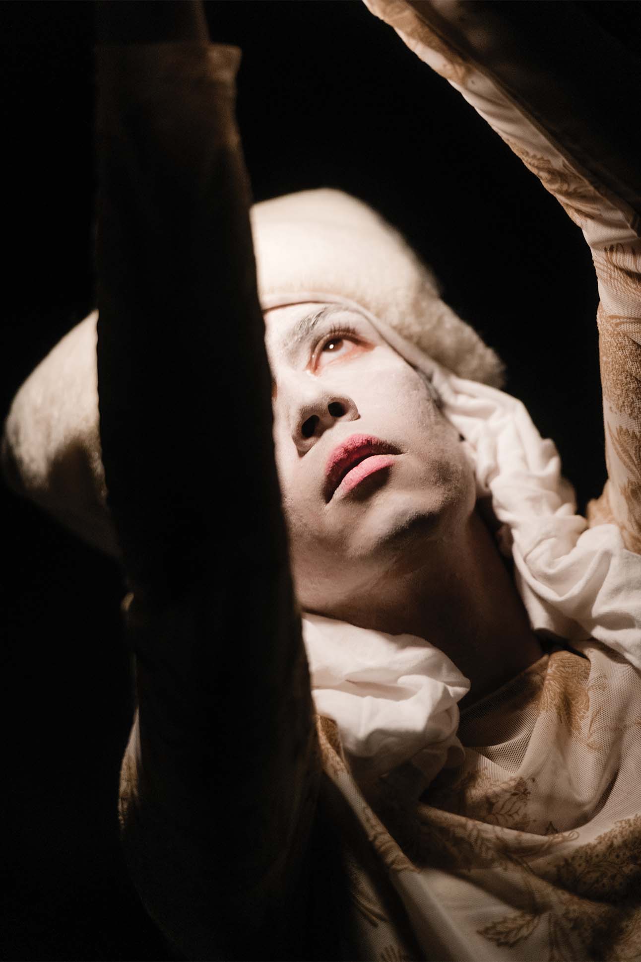 Caked in white body paint, often with shaven heads, dancers move at a glacial pace. Choreography gives way to improvisation, with gestures arising from one’s interior state. Faces contort into baroque expressions of human emotion. Teeth gnash in pain; mouths gape in a silent wail. Limbs twist then unspool, the body conveying states that verge on the metaphysical: a memory long buried, an emotion too raw to speak of.