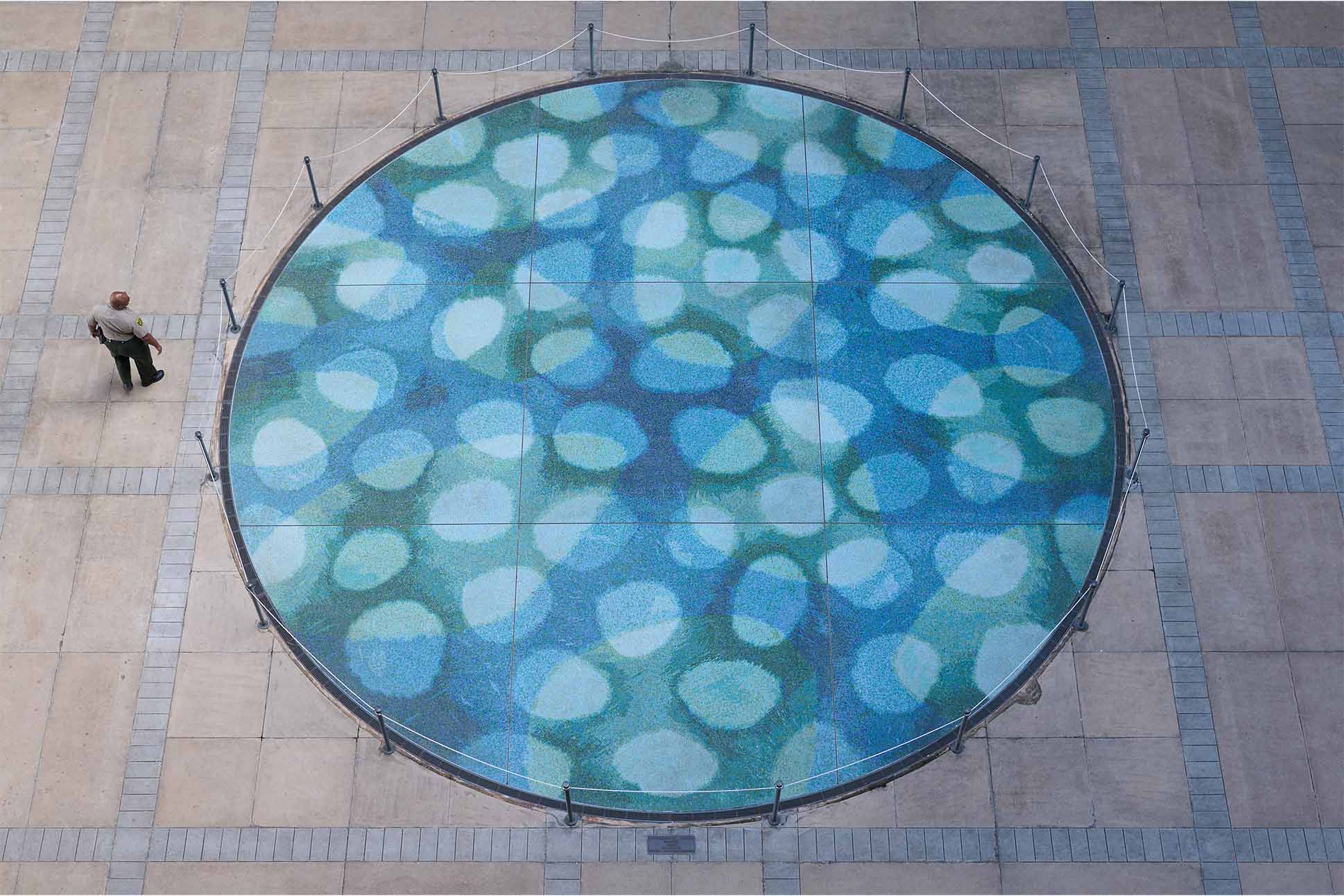 ハワイの重要なアーティストの多くにとって、その表現が最も力強く響いた場は、しばしば公共の空間だった。ハワイのモダニズム美術を代表するサトル・アベ氏とタダシ・サトウ氏は、ともにギルド共同創設者のイサミ・ドイ氏に師事している。二人は、それぞれに象徴的なパブリックアートを数多く残している。サトル・アベ氏による「ザ シード」は、ファーリントン高校前に堂々とそびえ、幻想的でしなやかなゴールドと鉄の森が見る者に不思議な感覚と希望を同時に与える作品である。一方、「アクエリアス」は、ハワイ州議会議事堂に設置されたタダシ・サトウ氏によるモザイクで、ハワイの碧い海に沈む岩礁を思わせる静謐な佇まいを持ち、彼の代表作のひとつとされている。