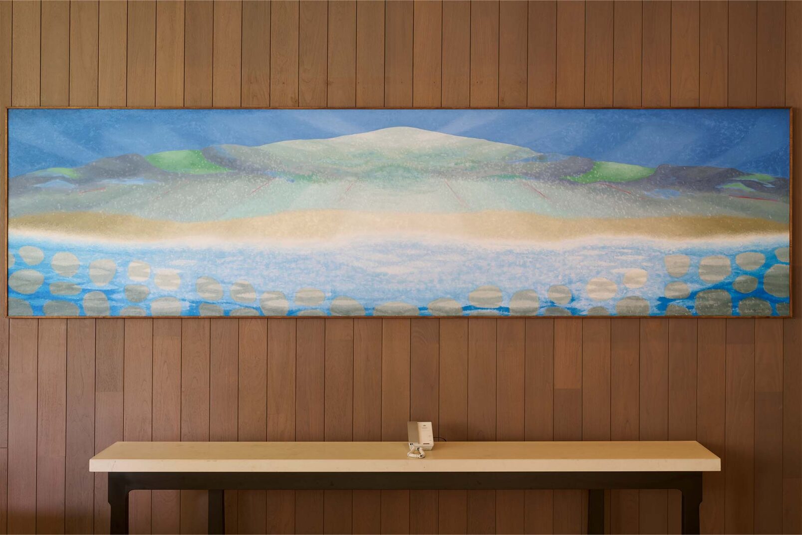 Today, several Tadashi Sato originals are permanently housed at Halekulani, where he once worked part-time before enlisting in the Army. As a successful artist, he later contributed several commissioned pieces. “Tadashi Sato captures the islands’ natural beauty in magnificent abstracted forms, leaving much open to interpretation but clearly showing his love of Hawai‘i,” says Joyce Okano, curator for the Halekulani Gallery exhibit Reflections, which ran from January through June of 2025.
